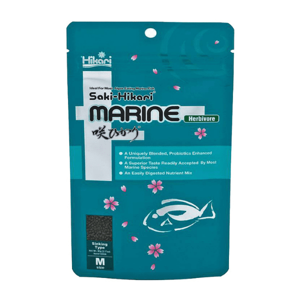 Formula di mangime selezionato arricchito con probiotici Hikari Germ per la maggior parte delle specie marine marine che si nutrono di alghe.